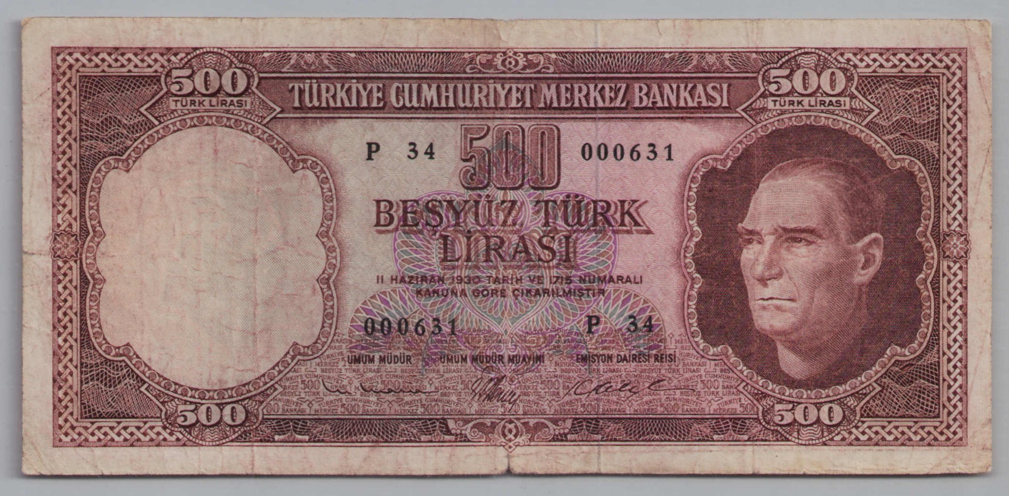 5.Emisyon 3.Tertip 500 Lira [P34]