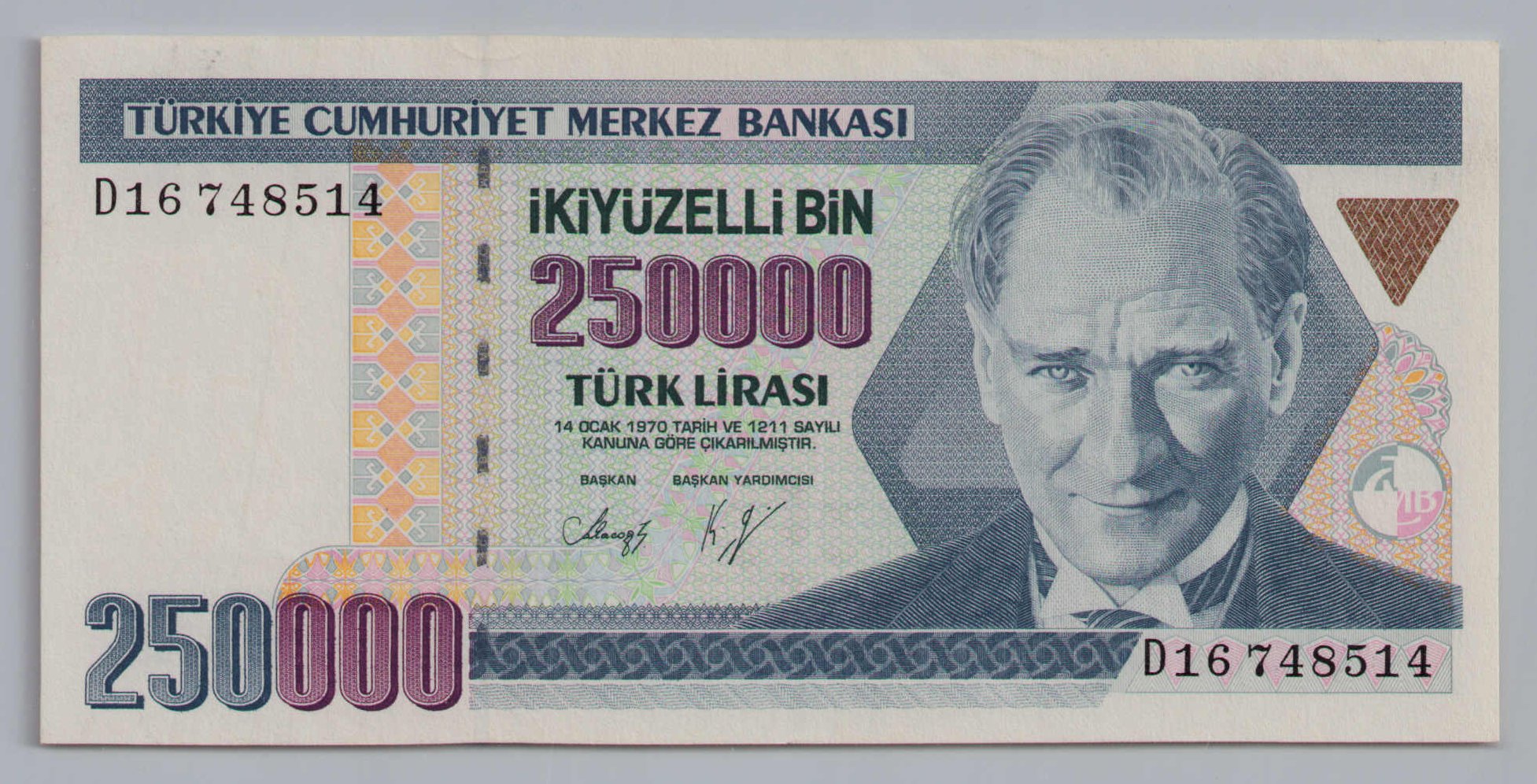 | Basıldığı Yer | : | Banknot Matbaası |