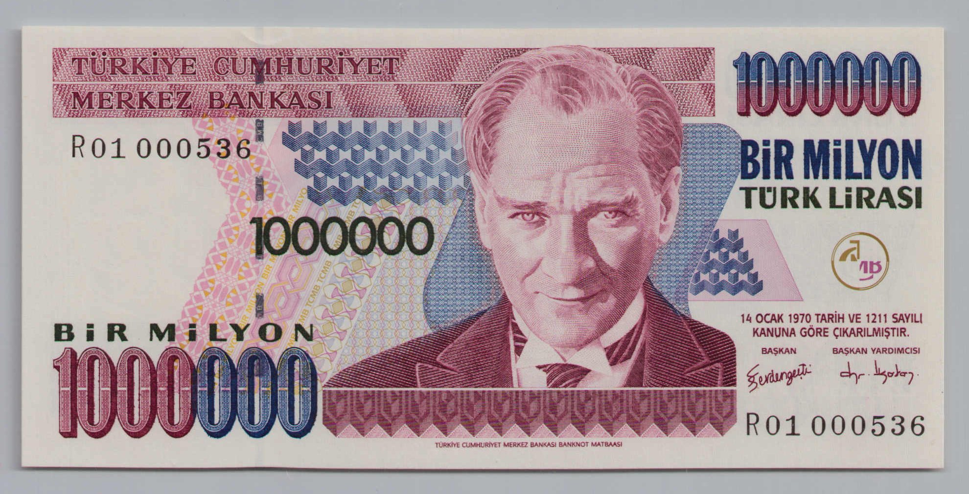 | Basılan Miktar | : | 444.617.000.000.000 TL | | Basıldığı Yer | : | Banknot Matbaası |