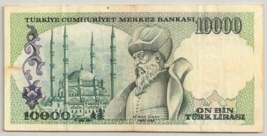 Arka yüz: Mimar Sinanın portresi ve Selimiye Camii (EDİRNE)